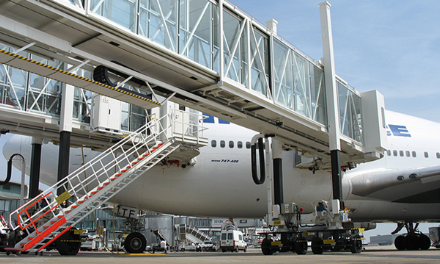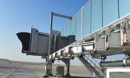 A380登機橋二層U1超高艙門而設(shè)計的登機橋,采用了行業(yè)內(nèi)首創(chuàng)的四輪驅(qū)動行走機構(gòu)及其控制系統(tǒng)。旋轉(zhuǎn)伸縮式機橋旋轉(zhuǎn)伸縮式旅客登機橋是對接飛機和機場航站樓(或固定橋)的一種帶有封閉式旅客過道的登機設(shè)備。T橋T型旅客登機橋是對接飛機和機場航站樓(或固定橋)的一種帶有T字型封閉式通道的登機設(shè)備,通過伸縮通道平移機構(gòu)實現(xiàn)登機橋的平移運動。
